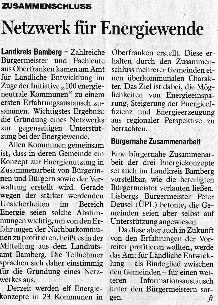 Ein erster Schritt wird es sein, das Stromnetz in kommunale Hand zu nehmen. Dann werde ich in Daschendorf die Wasserkraft und in Priegendorf die Windkraft nutzen.