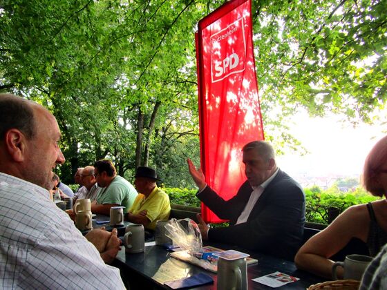 Der Bundestagsabgeordnete und Landratskandidat der SPD Bamberg-Land Andreas Schwarz besuchte am 30.07.2019 bei bestem Kellerwetter im Rahmen seiner Kellertour unter dem Motto „Brotzeit, Bier & Politik“ Buttenheim und wurde vom Vorsitzenden des SPD-Ortsvereins Buttenheim, Martin Dörfler, im Namen des Ortsvereins auf dem St. Georgenbräu-Keller herzlich begrüßt.