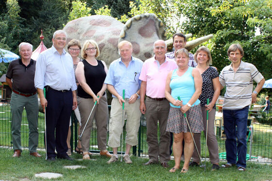 Die Minigolfanlage von Birgit und Peter Kern auf der anderen Straßenseite rundet den "Gößweinsteiner Freizeitpark" ab. „Eine wunderschön gepflegte Anlage“, wie Anette Kramme beeindruckt feststellt. Seit 2005 zeichnen die Kerns dafür verantwortlich und haben in dieser Zeit beachtliches geleistet. Entstanden ist eine saubere, hochwertige Attraktion für Gößweinstein, die Jahr für Jahr Groß und Klein zum Schlägerschwingen einlädt.